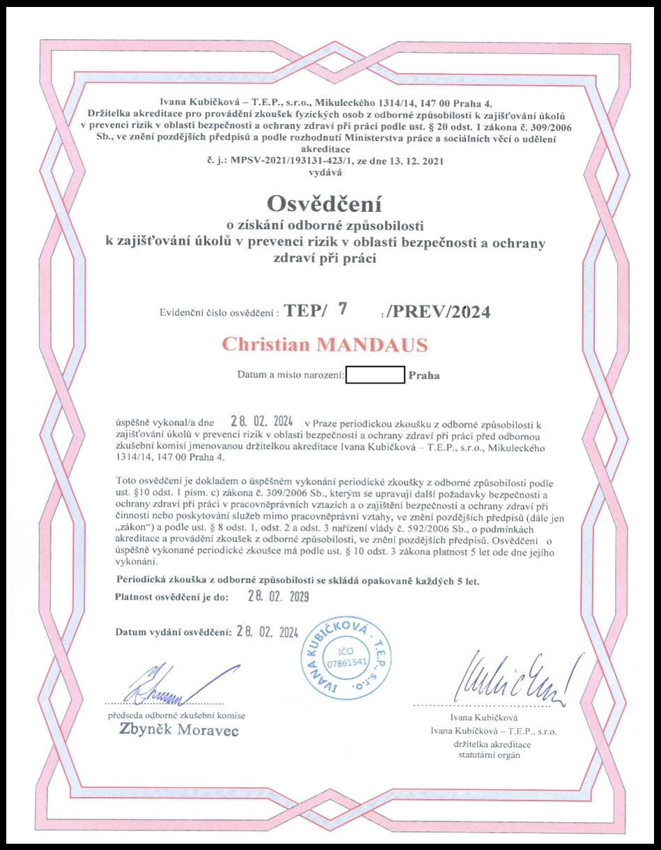 • odborné poradenství v oblasti BOZP